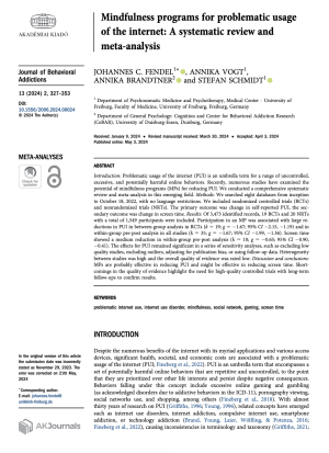 Mindfulness programs for problematic usage of the internet: A systematic review and meta-analysis