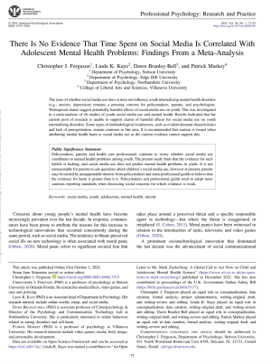 There Is No Evidence That Time Spent on Social Media Is Correlated With Adolescent Mental Health Problems: Findings From a Meta-Analysis