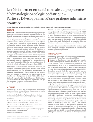 Le rôle infirmier en santé mentale au programme d’hématologie-oncologie pédiatrique – Partie 1 : Développement d’une pratique infirmière novatrice