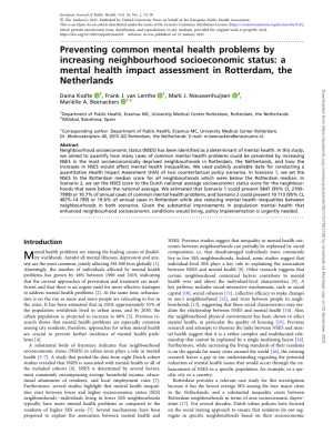 Kosīte, D., van Lenthe, F. J., Nieuwenhuijsen, M. J. & Beenackers, M. A. (2025). Preventing common mental health problems by increasing neighbourhood socioeconomic status: a mental health impact assessment in Rotterdam, the Netherlands. European Journal of Public Health, 35(1), 72–78. https://doi.org/10.1093/eurpub/ckae222